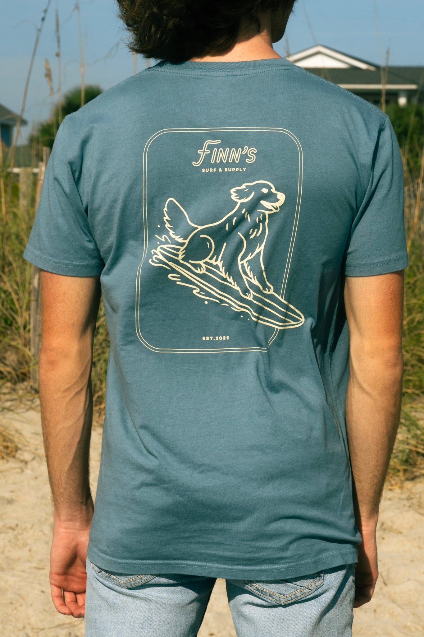 Our Heritage Tee comes in a soft slate blue and features a cream outline of our iconic Finn logo. Crafted as a lightweight, 100% combed cotton breathable tee, it’s designed for comfort and effortless style.
